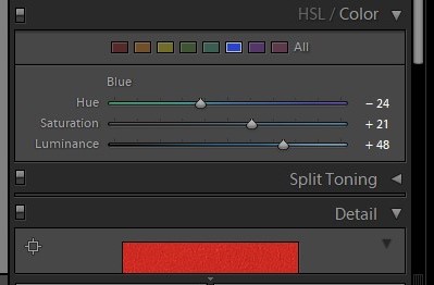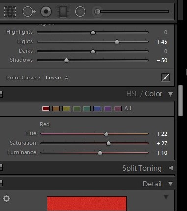 First get the fundamentals out of the way; change the contrast, highlight, shadow, colours and turn the Red and Blue channels. Now we are going to continue changing the shades of colour. Now let’s focus on making the bright Red colour like an Aerochrome. We’ll use the Hue / Saturation sliders once more, this time choosing the Red and moving the lever to the left. You will see the red tones become more prominent. Finally, using Color Panel we can further change the Colour. Now our picture begins looking more like an Infrared Areochrome.